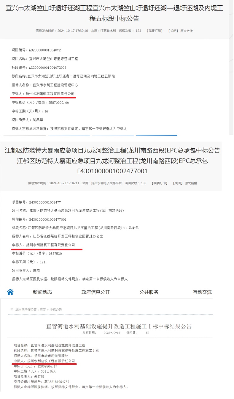 【概要描述】近日,揚(yáng)州水利建筑工程有限責(zé)任公司市場(chǎng)開(kāi)拓捷報(bào)頻傳,公司相繼中標(biāo)直管河道水利基礎(chǔ)設(shè)施提升改造工程施工Ⅰ標(biāo)、宜興市太湖竺山圩退圩還湖一退圩還湖及內(nèi)堤工程五標(biāo)段、江都區(qū)防范特大暴雨應(yīng)急項(xiàng)目九龍河整治工程(龍川南路西段),中標(biāo)價(jià)分別為1280.98萬(wàn)元、2587萬(wàn)元和952.75萬(wàn)元,為公司高質(zhì)量發(fā)展再添新動(dòng)力。 直管河道水利基礎(chǔ)設(shè)施提升改造工程施工Ⅰ標(biāo)作為域內(nèi)項(xiàng)目,針對(duì)市內(nèi)直管河道存在的河道淤積、護(hù)岸損壞以及閘(泵)站水泵及電氣設(shè)備故障率逐年攀升存在安全隱患等問(wèn)題,對(duì)淤積河道進(jìn)行清淤、對(duì)河坡險(xiǎn)工段進(jìn)行加固處理。建成后對(duì)改善河道引排能力,改善水環(huán)境和生態(tài)環(huán)境,促進(jìn)經(jīng)濟(jì)可持續(xù)發(fā)展?具有重大意義?! ∫伺d市太湖竺山圩退圩還湖一退圩還湖及內(nèi)堤工程五標(biāo)段是太湖水環(huán)境綜合治理項(xiàng)目,著力于進(jìn)行生態(tài)修復(fù),做好生態(tài)經(jīng)濟(jì)文章。工程建成后對(duì)減少竺山圩區(qū)域農(nóng)業(yè)面源污染、消除內(nèi)源污染、恢復(fù)太湖水面積等方面將起到十分積極的作用?! 〗紖^(qū)九龍河整治工程聚焦龍川南路西片九龍河整治,建設(shè)內(nèi)容主要為擴(kuò)大片區(qū)水面積,增加片區(qū)排水出路,縮短雨水管網(wǎng)排水路徑等,項(xiàng)目完工后對(duì)完善區(qū)域河網(wǎng)建設(shè)具有重要意義?! ∠乱徊?,公司將嚴(yán)格按照項(xiàng)目建設(shè)標(biāo)準(zhǔn),組建優(yōu)秀管理團(tuán)隊(duì),提升履約質(zhì)效,全力打造精品工程、示范工程、標(biāo)桿工程。以時(shí)不我待的緊迫感和使命感,錨定目標(biāo),凝心聚力,進(jìn)一步擴(kuò)大市場(chǎng)攻堅(jiān)成效,為公司全面完成年度目標(biāo)任務(wù)助力。